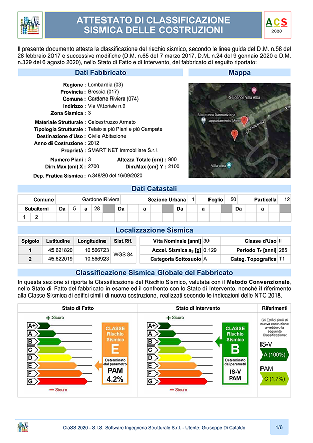 - Attestato di Classificazione Sismica (ACS) con risultati e diagrammi
