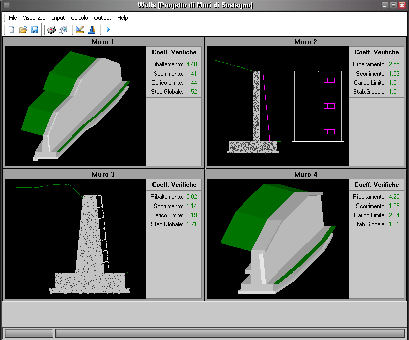 Programma specifico per l’analisi, la progettazione e il disegno di muri a mensola in c.a., anche con contrafforti e con fondazione su pali, nonché di muri a gravità in cls e in pietrame a gabbioni, adeguato alle Norme Tecniche per le Costruzioni.