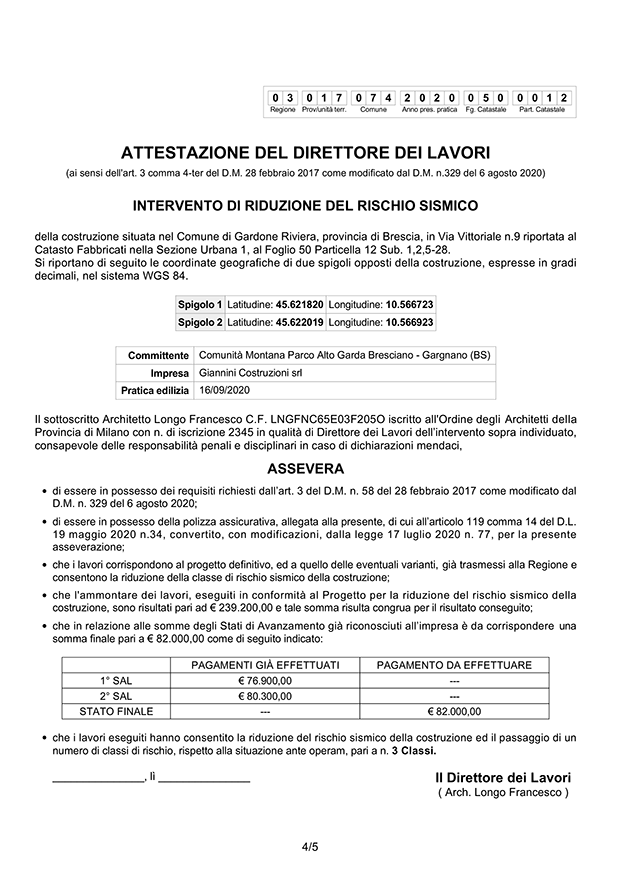 • Asseverazioni del Direttore Lavori e del Collaudatore
