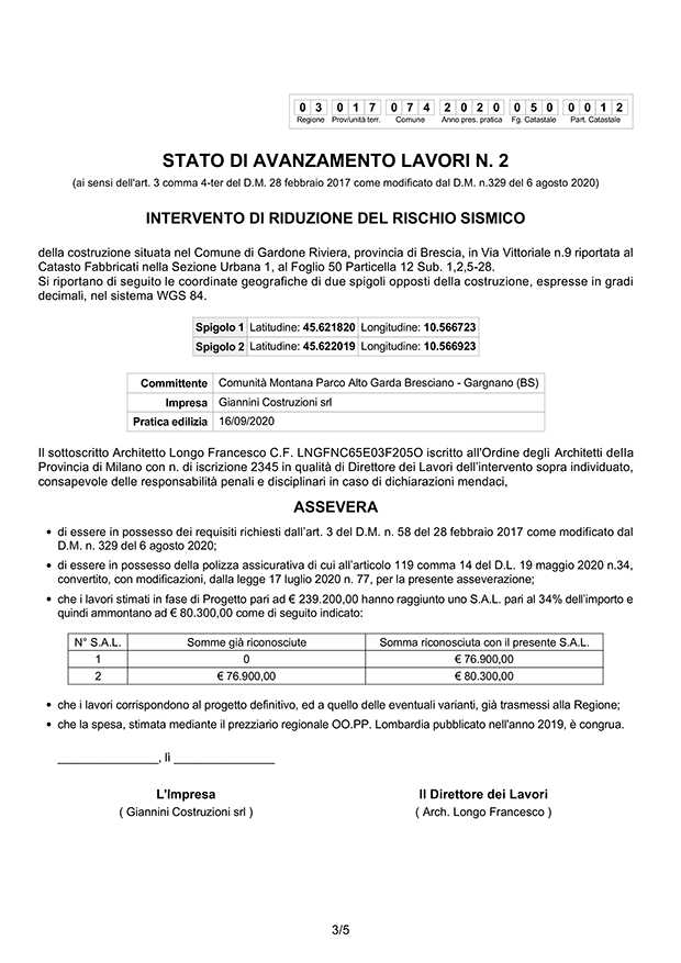 Inoltre, sono richieste anche le informazioni del costo complessivo dei lavori, gli importi parziali maturati negli eventuali stati di avanzamento ed il prezziario utilizzato.