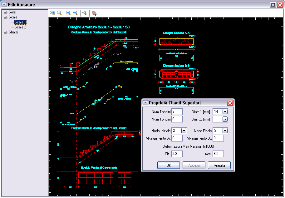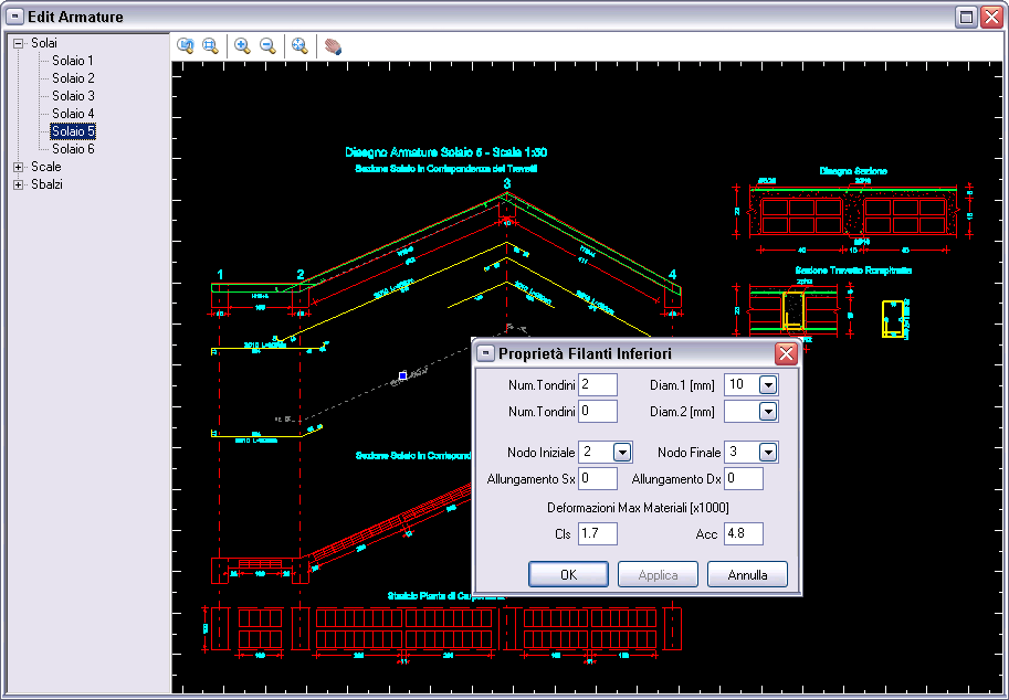 Grazie ad un familiare ambiente grafico e ad un innovativo input "ad oggetti", si possono inserire rapidamente tutti gli elementi di ogni Solaio, Scala o Sbalzo, con specifiche finestre di Input Grafico-Interattivo che consentono di progettare in maniera rapida ed estremamente intuitiva.