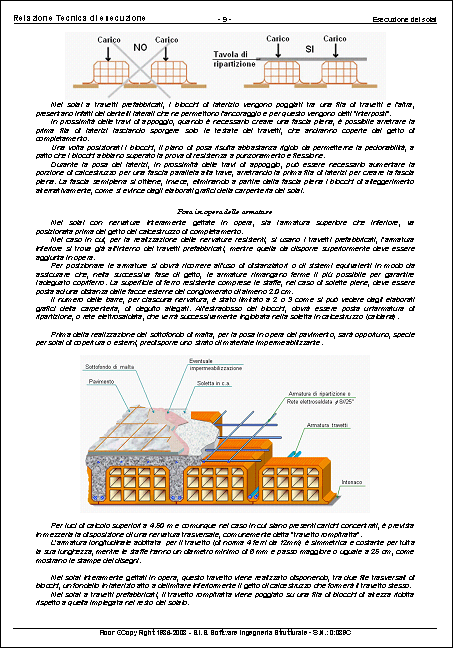 Il Calcolo dei Solai viene effettuato con riferimento ai carichi permanenti e variabili, gravanti su una striscia di larghezza unitaria, trascurando la rigidezza torsionale e flessionale delle Travi di appoggio e tenendo conto della dimensione "effettiva" dei Nodi. Per il Calcolo delle Scale, invece, le sollecitazioni vengono valutate con riferimento a tutta la larghezza della Soletta.