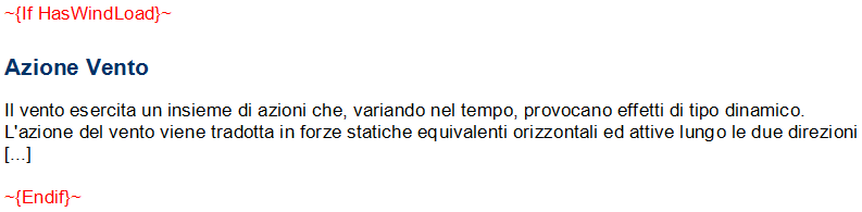 Nella figura seguente, le istruzioni in rosso racchiudono il paragrafo relativo all'Azione Vento.