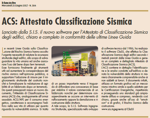 ClaSS è il programma che la SIS Software Ingegneria Strutturale ha sviluppato per la classificazione sismica delle costruzioni; l'unico in commercio che redige l'Attestato di Classificazione Sismica. La versione 2020 recepisce le modifiche e le integrazioni apportate dal recente [...]