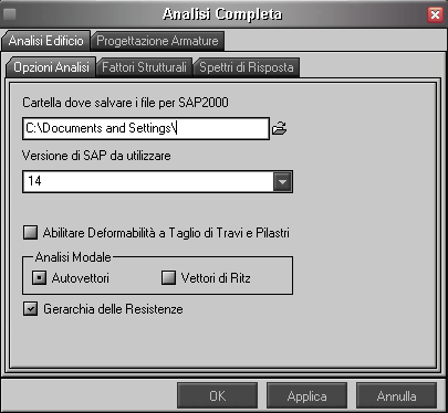 La valutazione dei modi e dei periodi di vibrazioni propri dell'edificio, può essere effettuata (a scelta dell'utente) con il Metodo degli Autovettori o con quello dei Vettori di Ritz. Tutte le sollecitazioni, valutate dalle analisi svolte dal SAP2000, vengono opportunamente combinate e processate dal SAPEX che compie tutte le operazioni di progettazione e verifica degli elementi strutturali.
