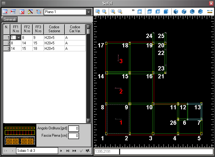 L'Input per i progetti con elevato numero di elementi risulta altrettanto rapido, grazie a potenti fasi di copiatura degli elementi da un piano all'altro e di generazione automatica dei dati, di cui il programma è dotato.