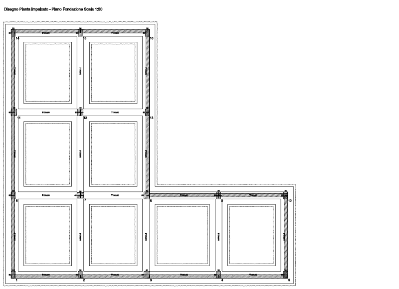 SAPEX si occupa anche del calcolo delle strutture di fondazione secondo il modello del grigliato di travi su suolo alla Winkler che considera il terreno come un letto di molle, con modulo di reazione costante. E' possibile optare per Fondazioni su Travi rovesce oppure su Plinti con o senza Pali.