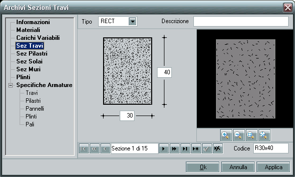 interattiva delle armature degli elementi strutturali nel pieno rispetto delle normative italiane. E' anche possibile
