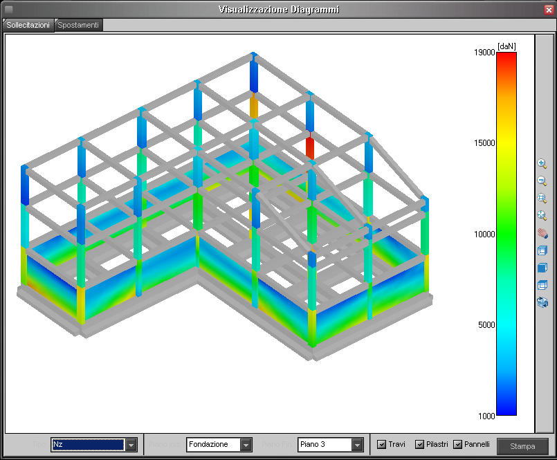 Effettuato il calcolo, è possibile visualizzarne i risultati, come l'Esito dell'elaborazione e il Diagramma delle Sollecitazioni sulla struttura.